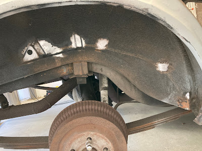 Then there are also lots of plug welds that need to be made. I don't like doing them and I'm nog great at them (which is probably why I don't like them...). The ones one the wheel well edge were the hardest and I had about 8 actually popping off which I had to re do: